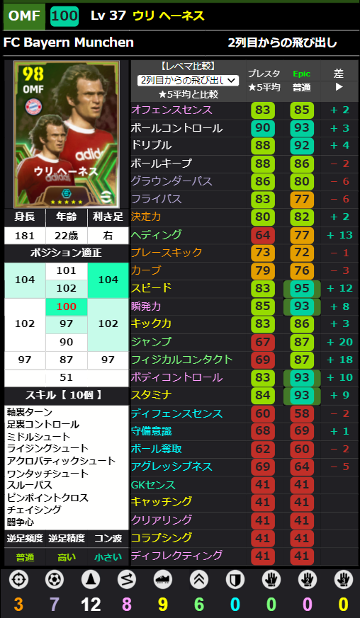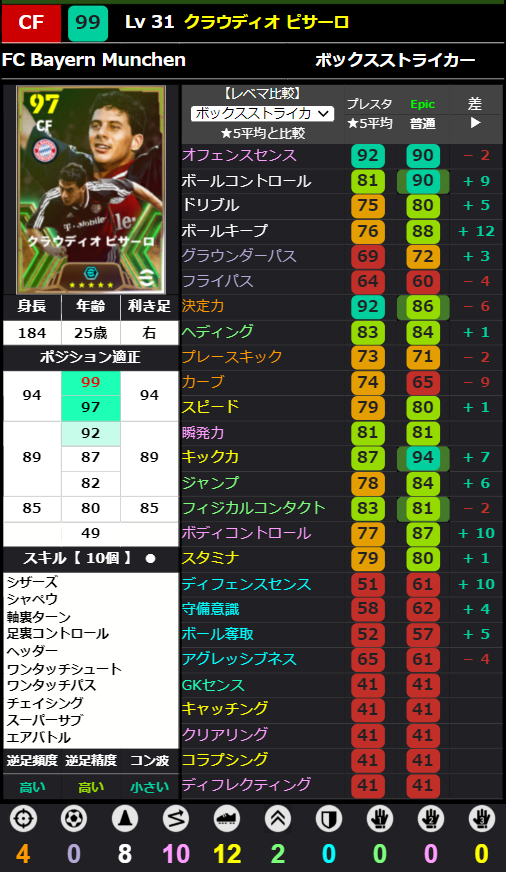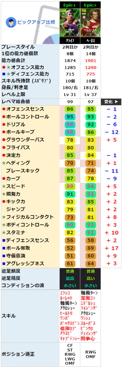 過去最強は間違いないが、ドリブル系数値低め、重要なスキル変更があり(比較参照)